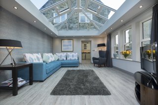 The Livin room pelmet is designed to give a conservatory or orangery a ‘room like’ feel with a plastered finish and extra insulation around the eaves where heat loss is most prevalent. Once installed, the LivinRoom gives the impression of a flat roof that is crowned by a lantern roof (orangery.) It can be fitted in different sizes, ranging from 300mm through to 1200mm, which means your choices won’t be limited when you choose this carefully-engineered system. In terms of cost, the LivinRoom is surprisingly affordable and a much more cost-effective solution to creating an orangery - it’s also the perfect home for downlights and speakers.